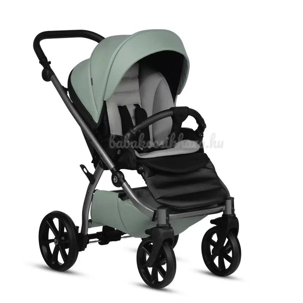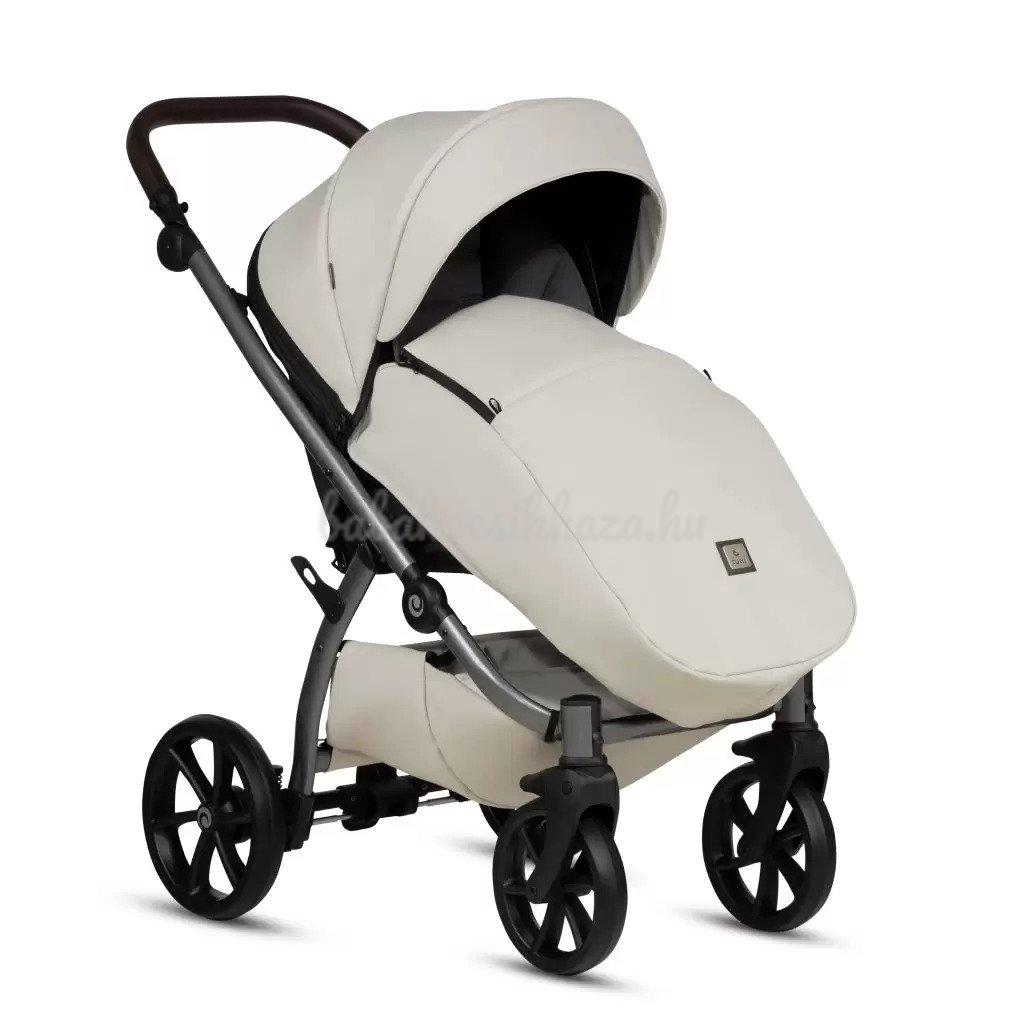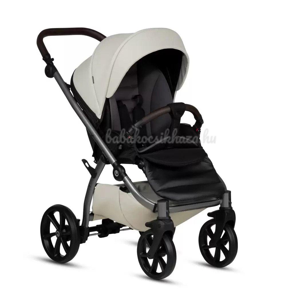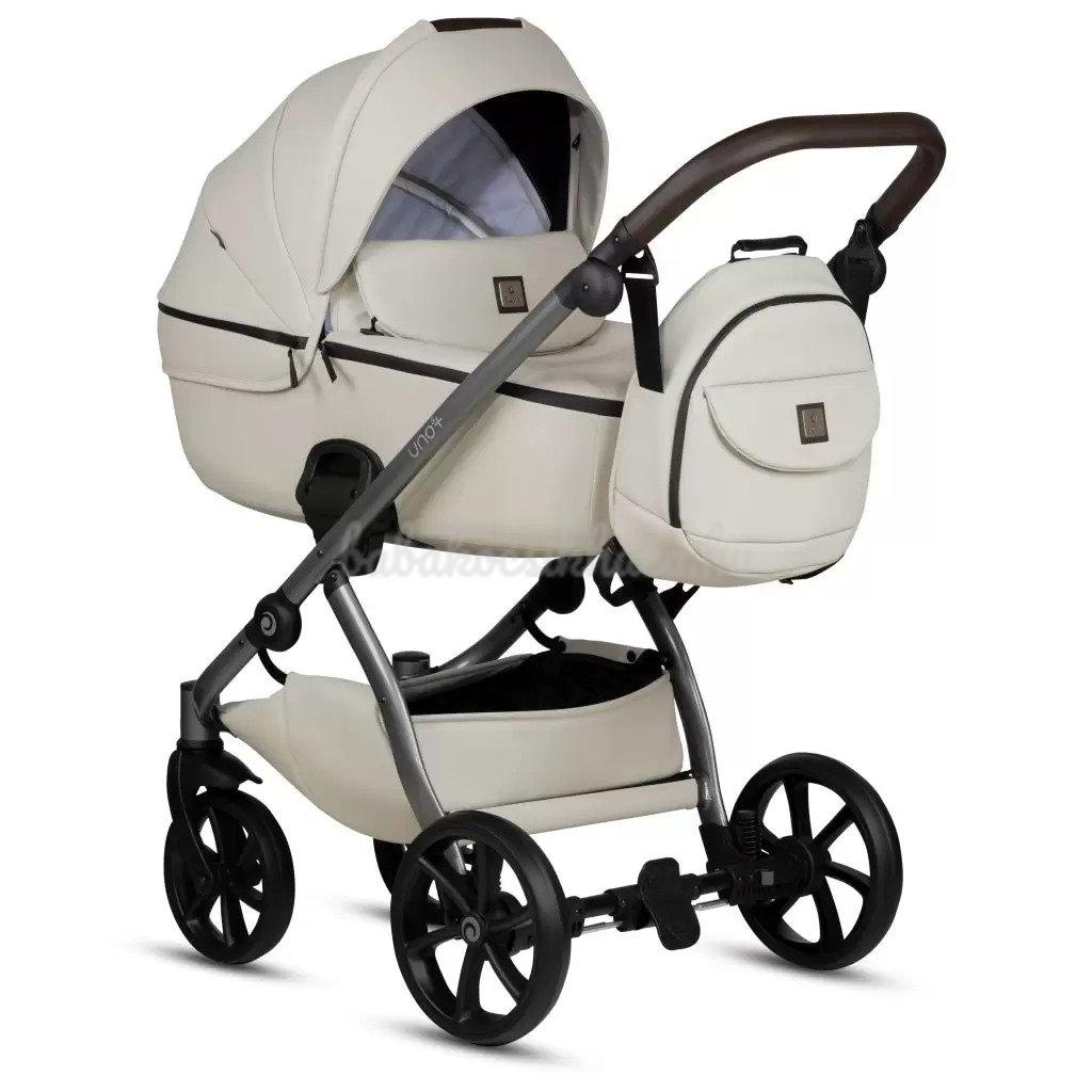 A babakocsi részletei nagyszerűen harmonizálnak egymással: ezüst felülettel ellátott váz, valamint pazar és tartós ökobőr részletek biztosítják a babakocsi lenyűgöző megjelenését. Az UNO kollekció a csillogó ökobőr részletek és a textilszövet figyelemre méltó harmonikus kombinációja teszi különlegessé