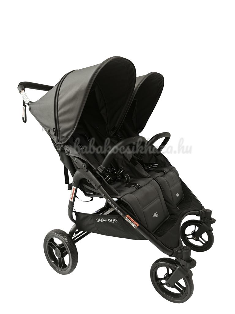 A Snap Duo iker- vagy testvérbabakocsi, amely ideális utazáshoz vagy mindennapi sétákhoz. Minden ülésrész 22 kg-ig terhelhető, így lehetővé teszi ikrek, de különböző korú gyermekek szállítását is. Elegáns fekete vázzal rendelkezik, forgatható első kerekekkel, kézzel varrott szegéllyel a fogantyún és a kapaszkodón, valamint varrott ülésekkel a luxusabb érzés érdekében.