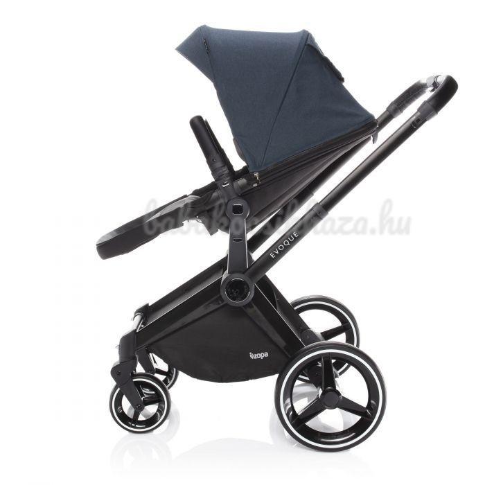 A stílusos és egyúttal praktikus Zopa Evoque babakocsi alkalmas gyermekek számára születésüktől 15 kg-ig. A dupla kombinációs kivitelezésénél a mózes tágas, mély szerkezete sportos ülőhelyzetet alakít ki. A sportülés pozíciója állítható, a menetiránnyal szemben és ellenesen is illeszthető. A gyermeket ötpontos biztonsági öv védi.