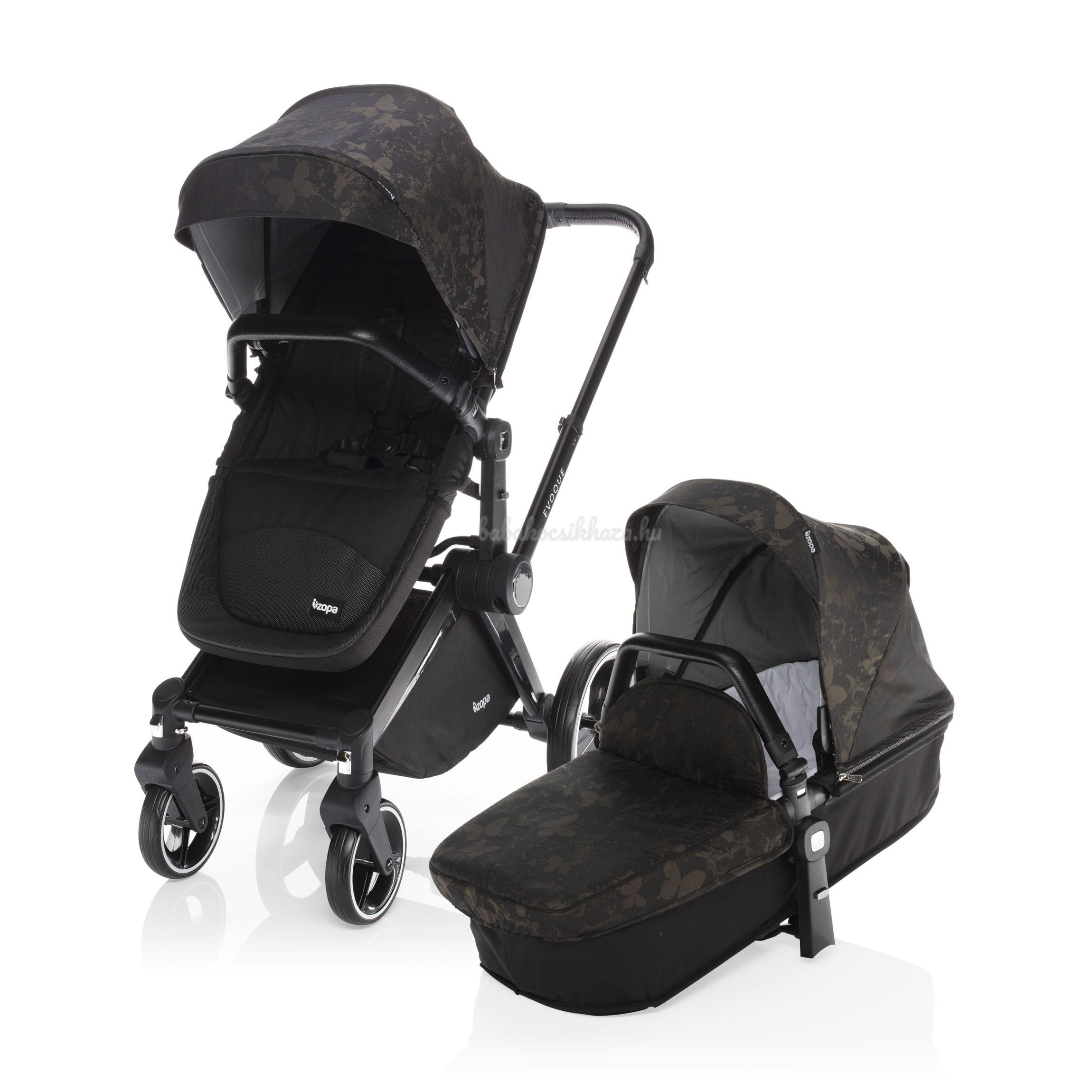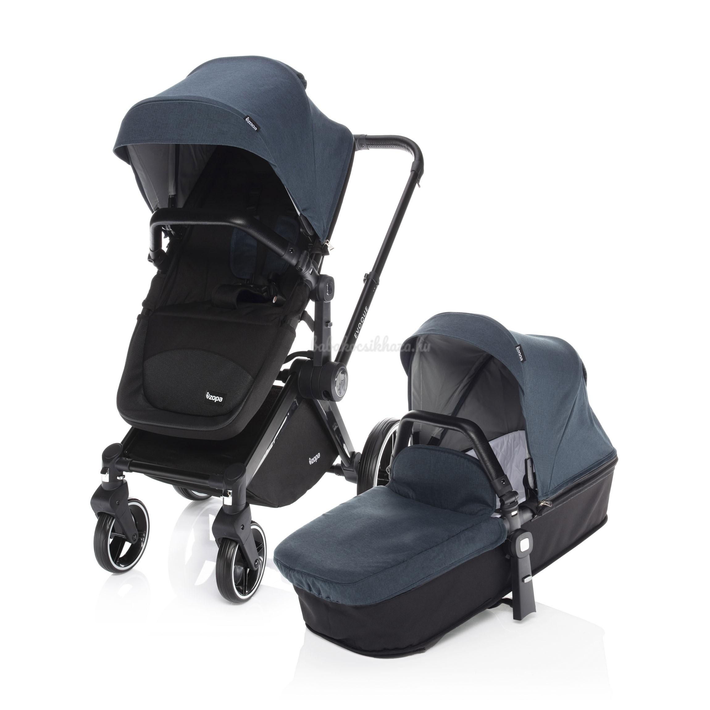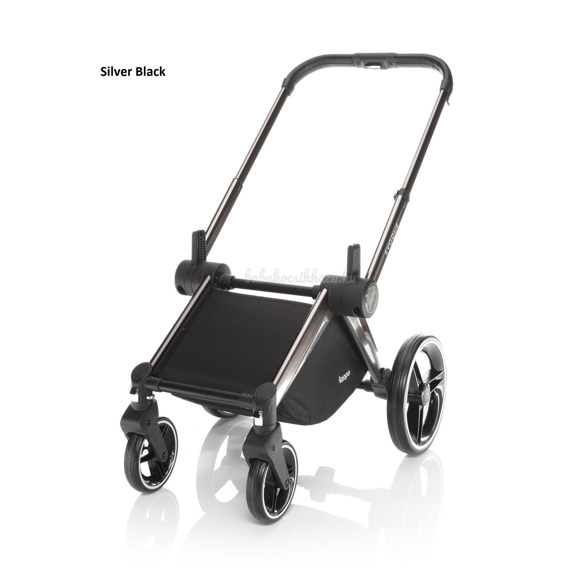Az alváz négy színkombinációban érhető el. Az alvázhoz a saját ízlésed szerint választhatod ki a megfelelő színű szettet. A szett tartalmazza a kupolát napellenzővel a mózeshez és a sportüléshez is, lábzsákot a mózeshez, párnázott biztonsági övet és lábzsákot a sportüléshez is.