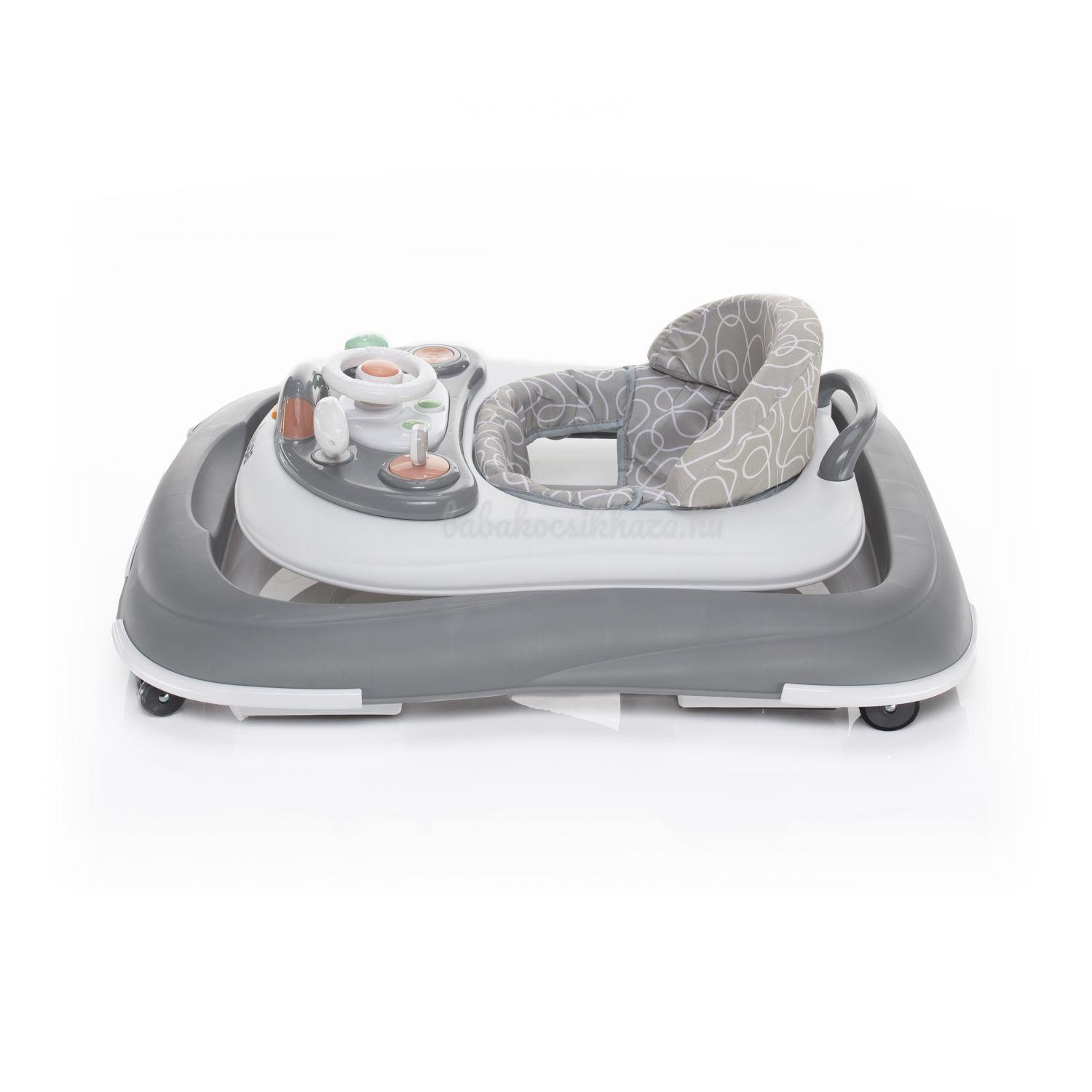 A gombokkal, kormánykerékkel és tükrökkel ellátott panel vonzza a gyermek figyelmét és ösztönzi a játékot.