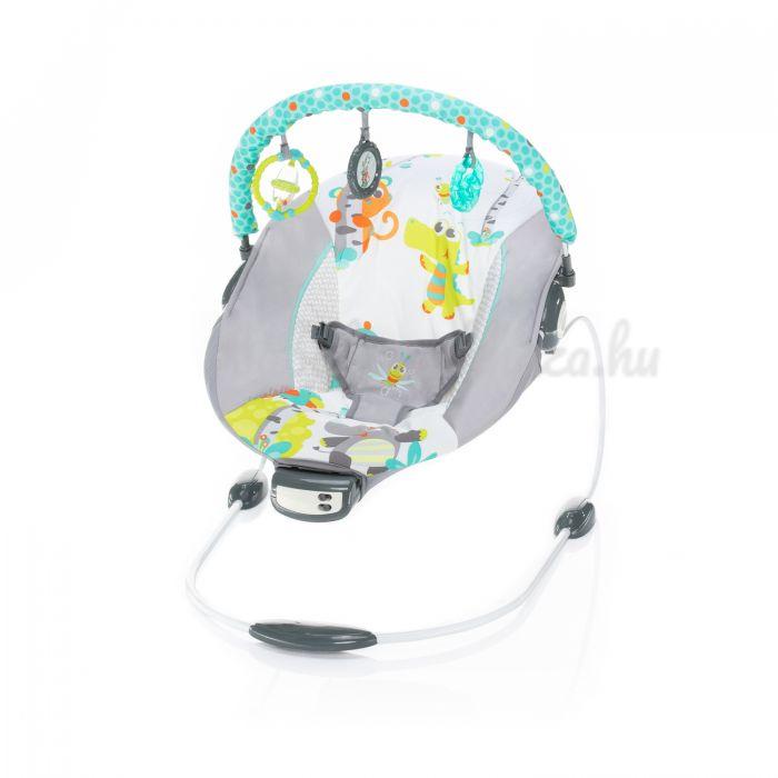 A Happy pihenőszék segít könnyen lefoglalni és megnyugtatni a kisbabát. Ezért a pihenőszék olyan praktikus funkciókkal rendelkezik, mint a nyugtató rezgések, a dallamok lejátszása és 2 hangerő fokozat. A gyerekeket lefoglalja a játékhíd a három mosható játékkal. A játékos rugalmas felépítése szabad ringatózást tesz lehetővé, ami biztonságos a csúszásmentes lábaknak és a 3 pontos biztonsági övnek köszönhetően.