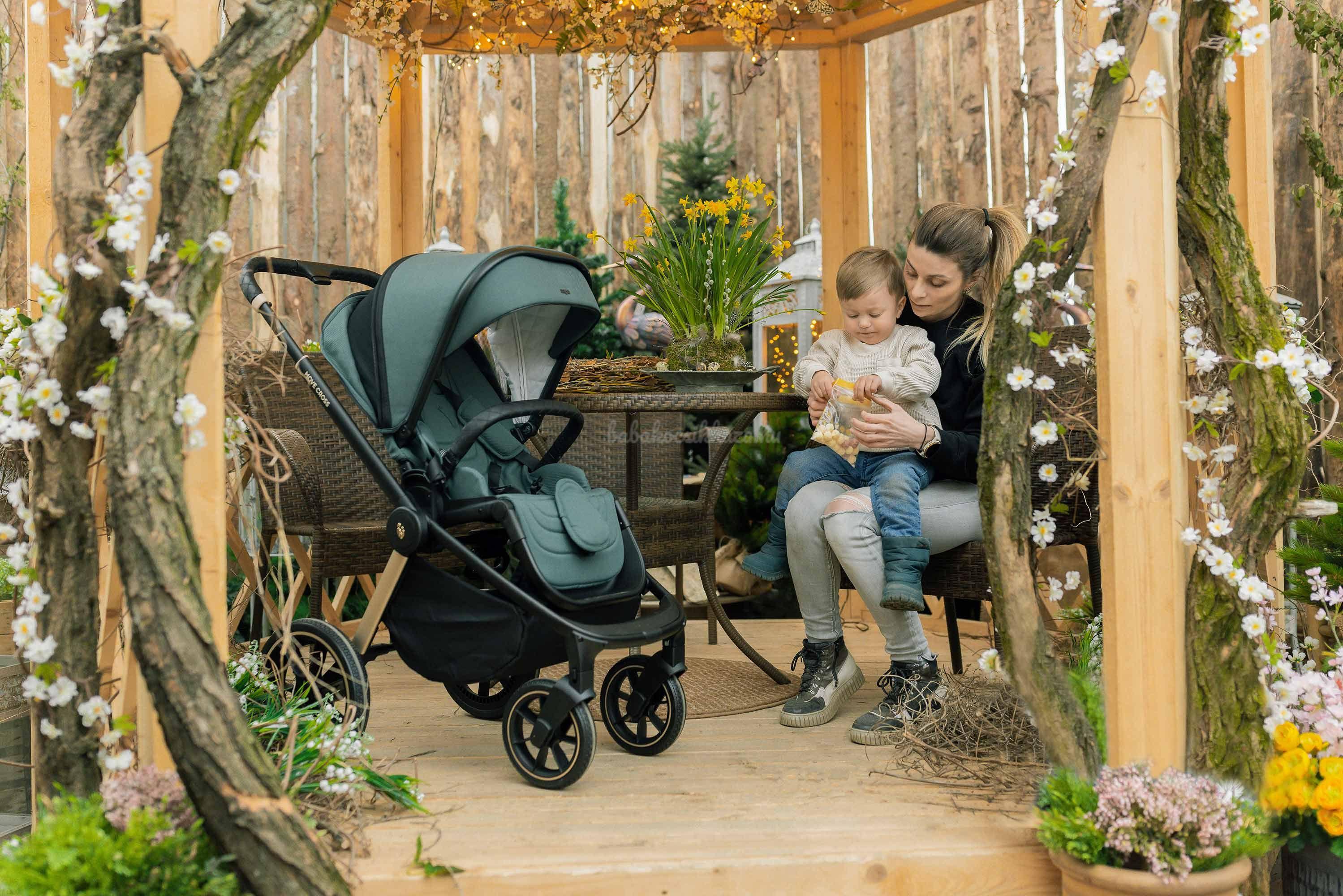 A puha felfüggesztésű extra nagy gumikerekek simán átviszik gyermekét minden akadályon. A Move Cross babakocsi ideális választás aktív családok számára. 22 kg-ig használható gyermekek számára. Tágas, puha párnázott ülés, állítható magasságú, ötpontos biztonsági övvel, utazás közben is kényelmet biztosít. A háttámla fekvésig állítható, illetve a lábtámasz is állítható.