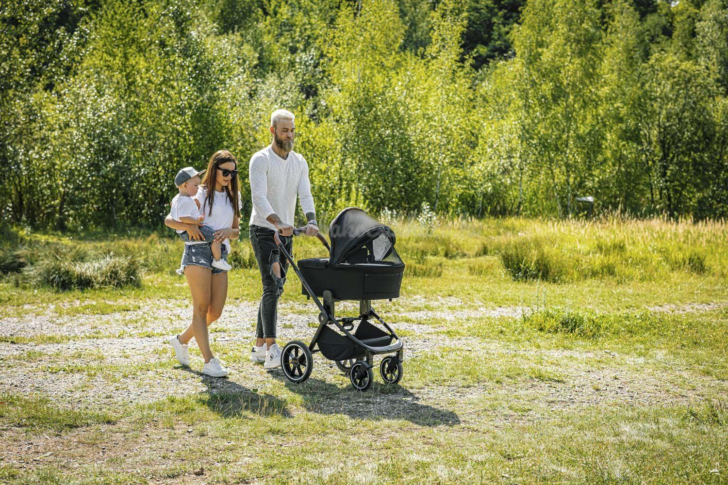 Az állítható magasságú fogantyú biztosítja, hogy a babakocsit a család minden tagja kényelmesen hordozhassa, magasságtól függetlenül.